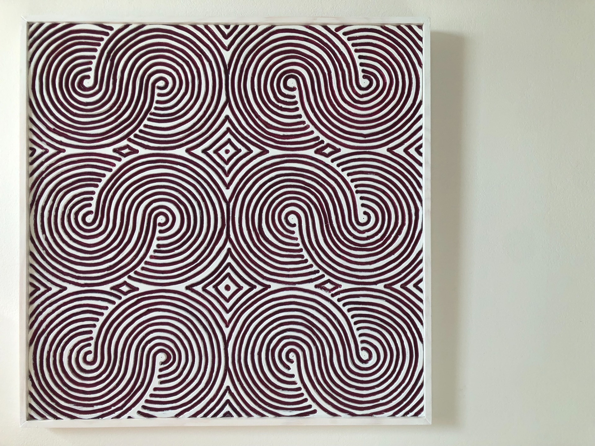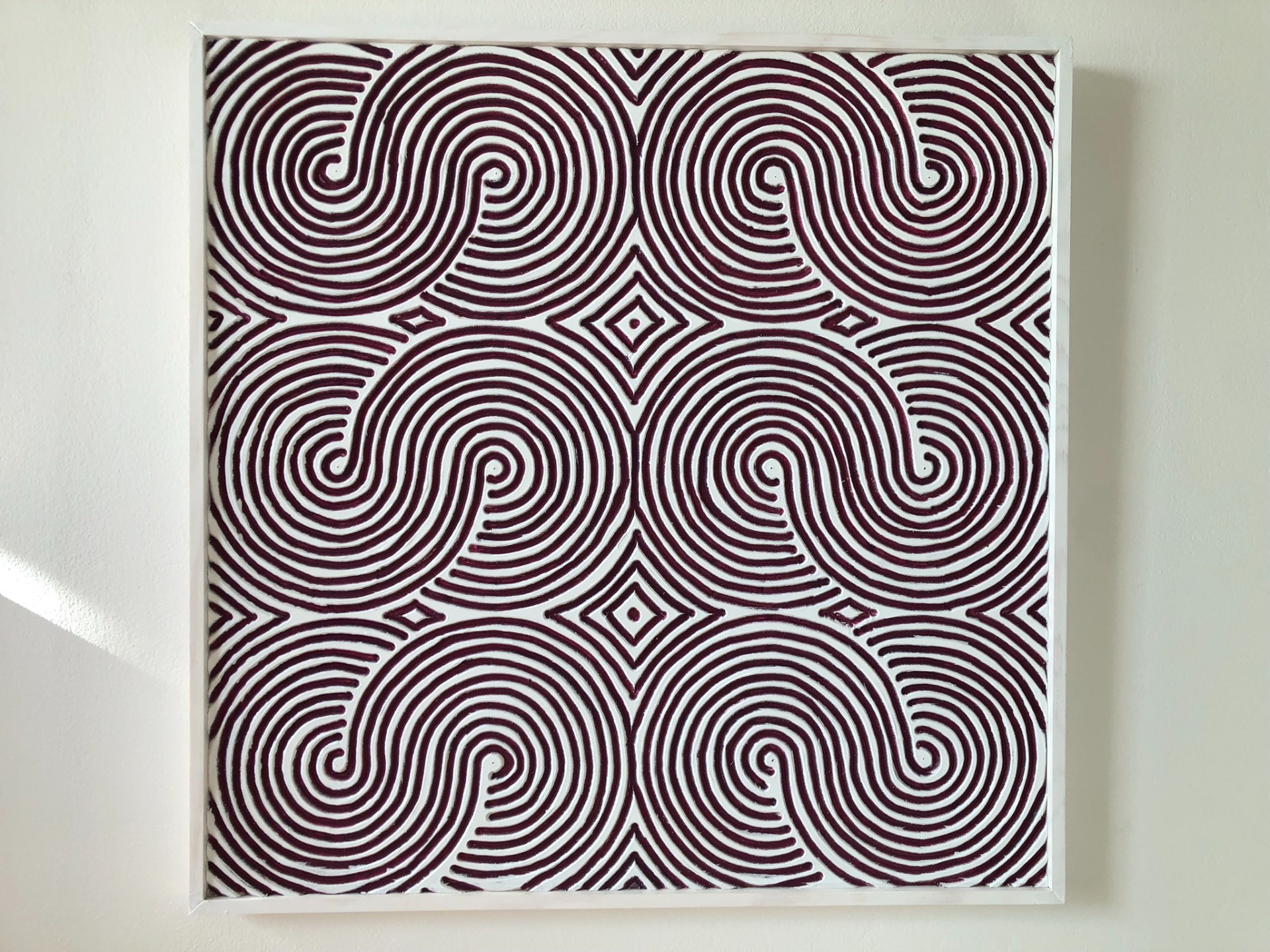 Je to minimalismus? Ano, ve svém základu ano. Používá jednoduché, opakující se tvary a omezenou barevnou paletu (bílá, fialová), což jsou znaky minimalismu. Nicméně, to, že je to reliéf, dodává minimalistickému konceptu nečekanou texturu a hloubku, čímž ho posouvá dál od ploché grafiky. Je to minimalismus s hloubkou a pohybem.
