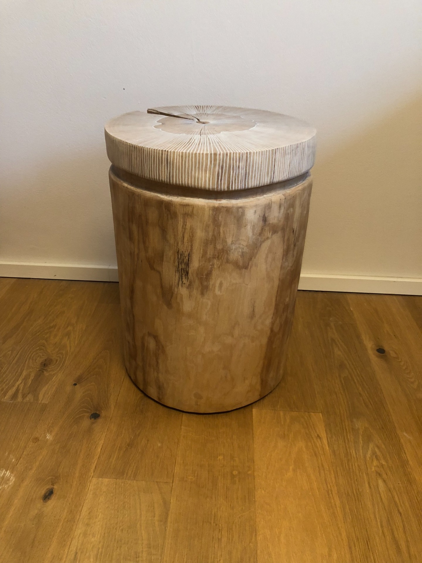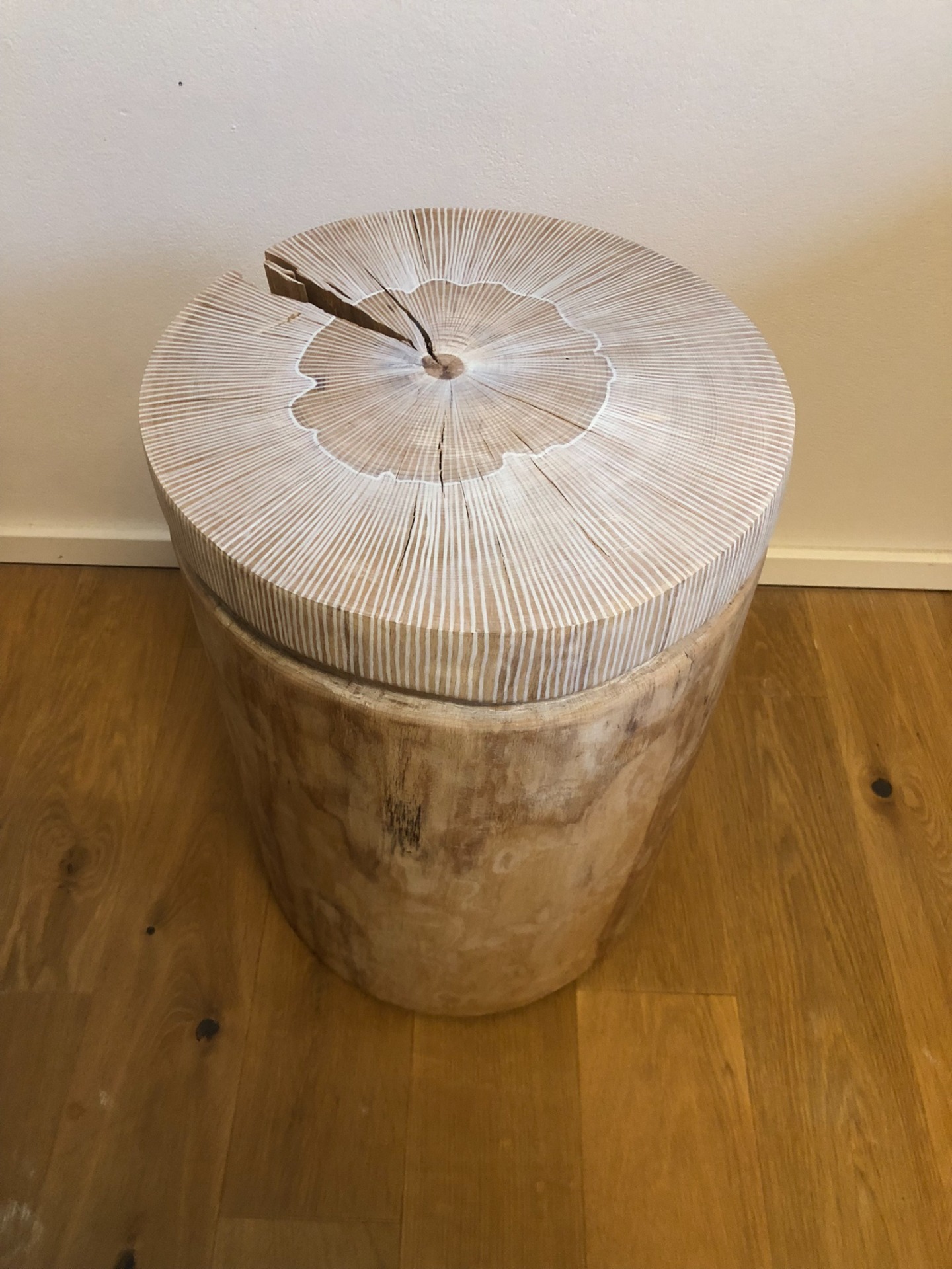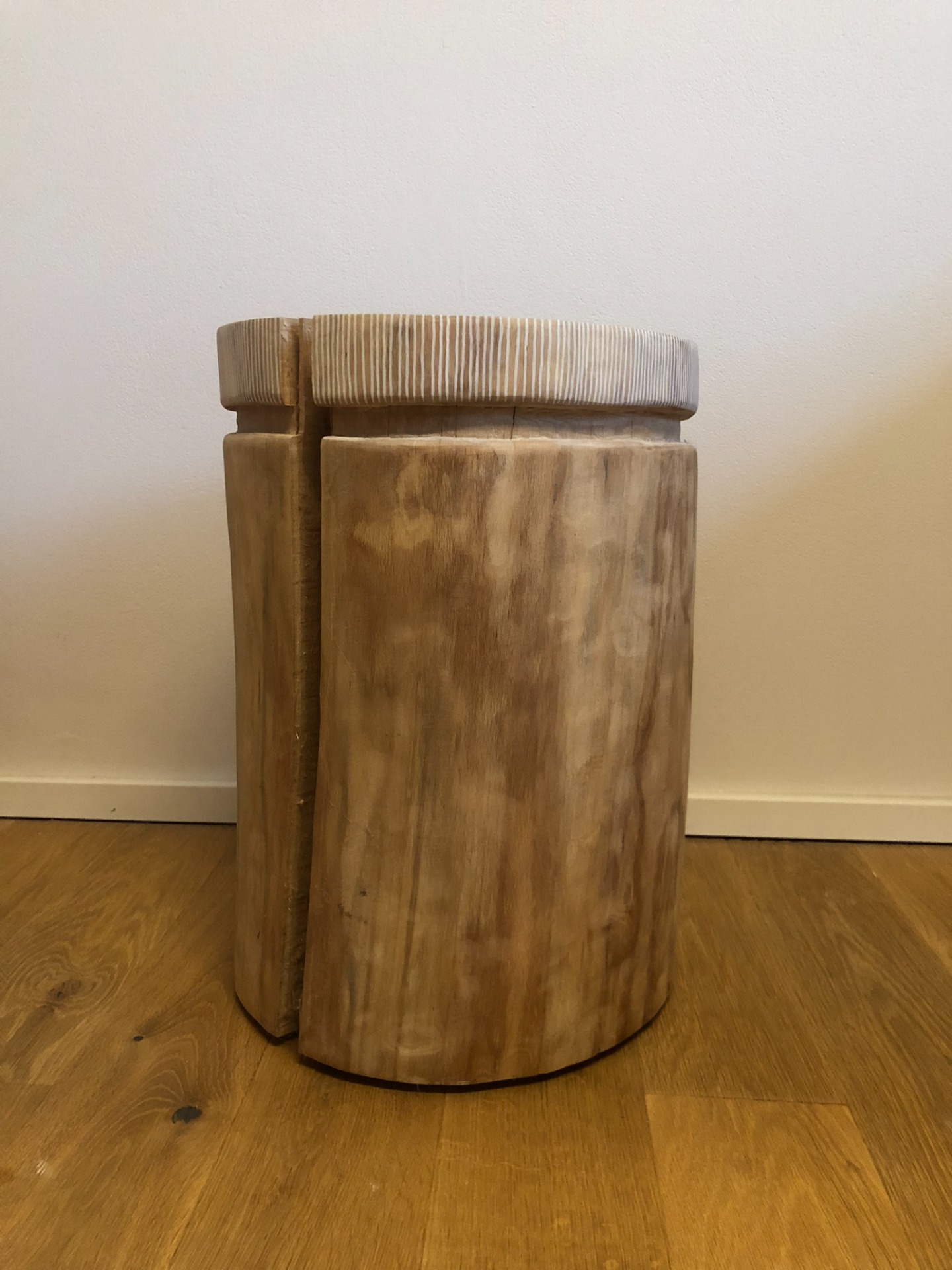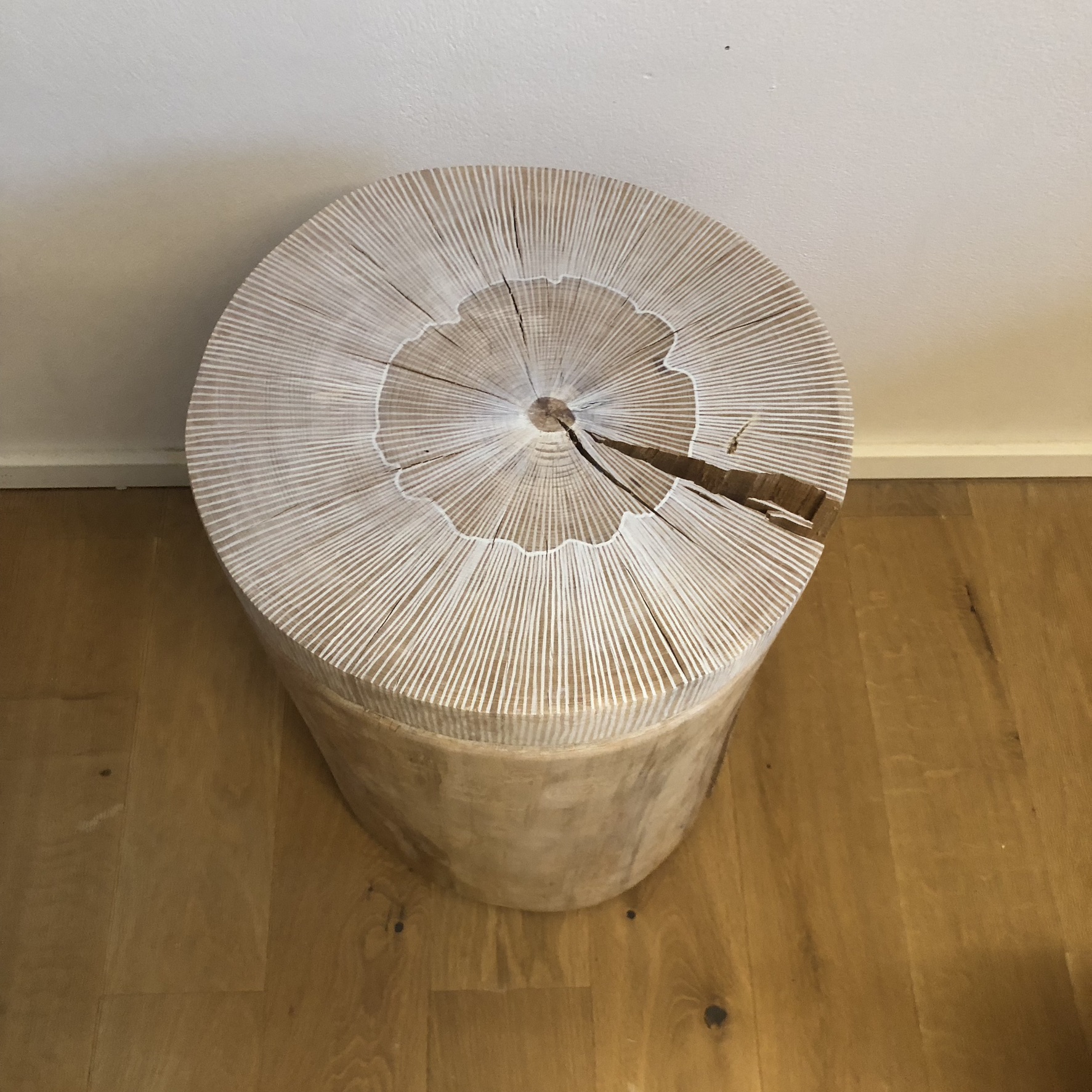 Špalek z bukového dřeva s paprskovitou kresbou je určen do minimalistického interiéru bytu, domu, loftu, apartmánu, jako stolek nebo sedátko.