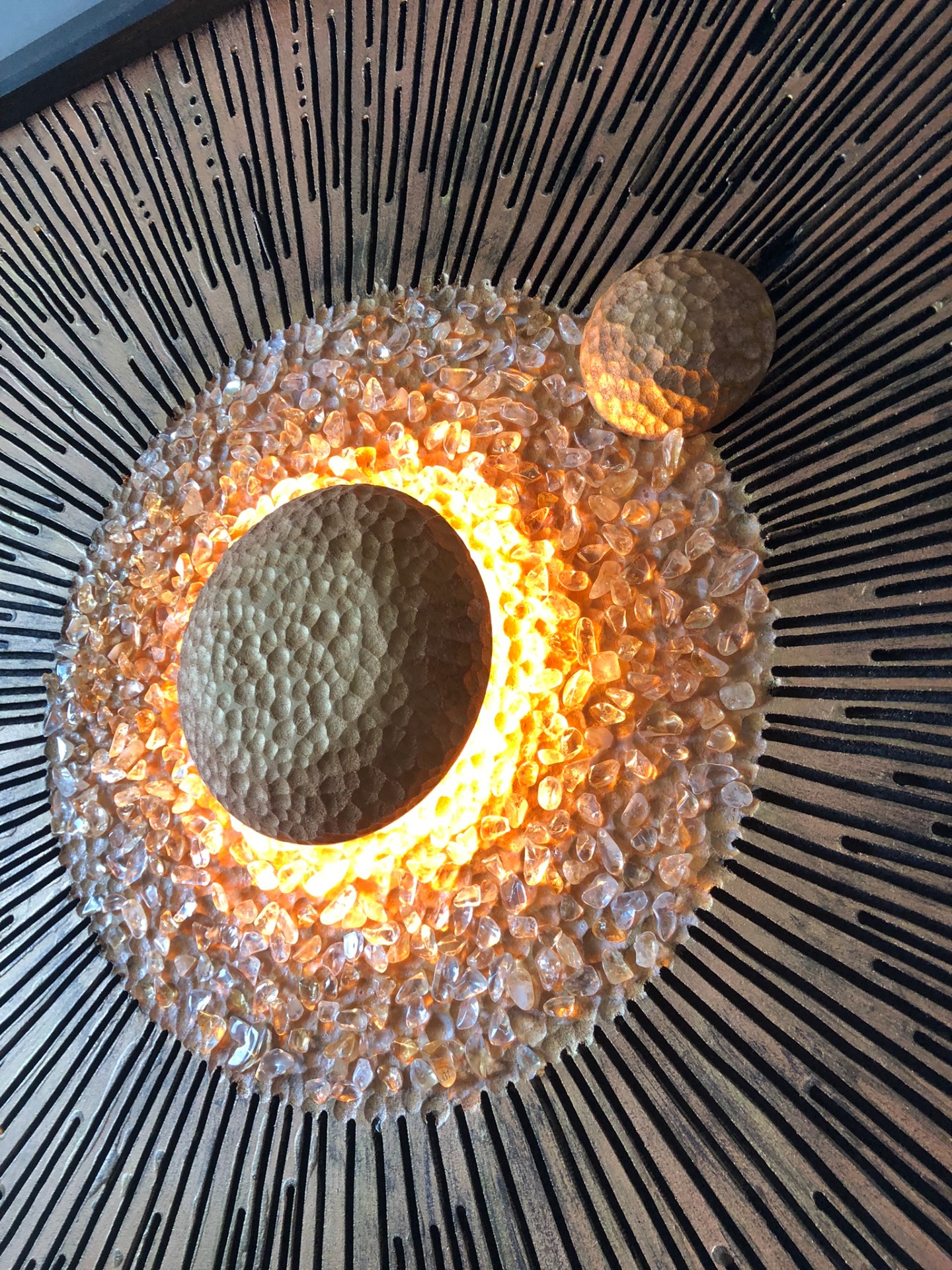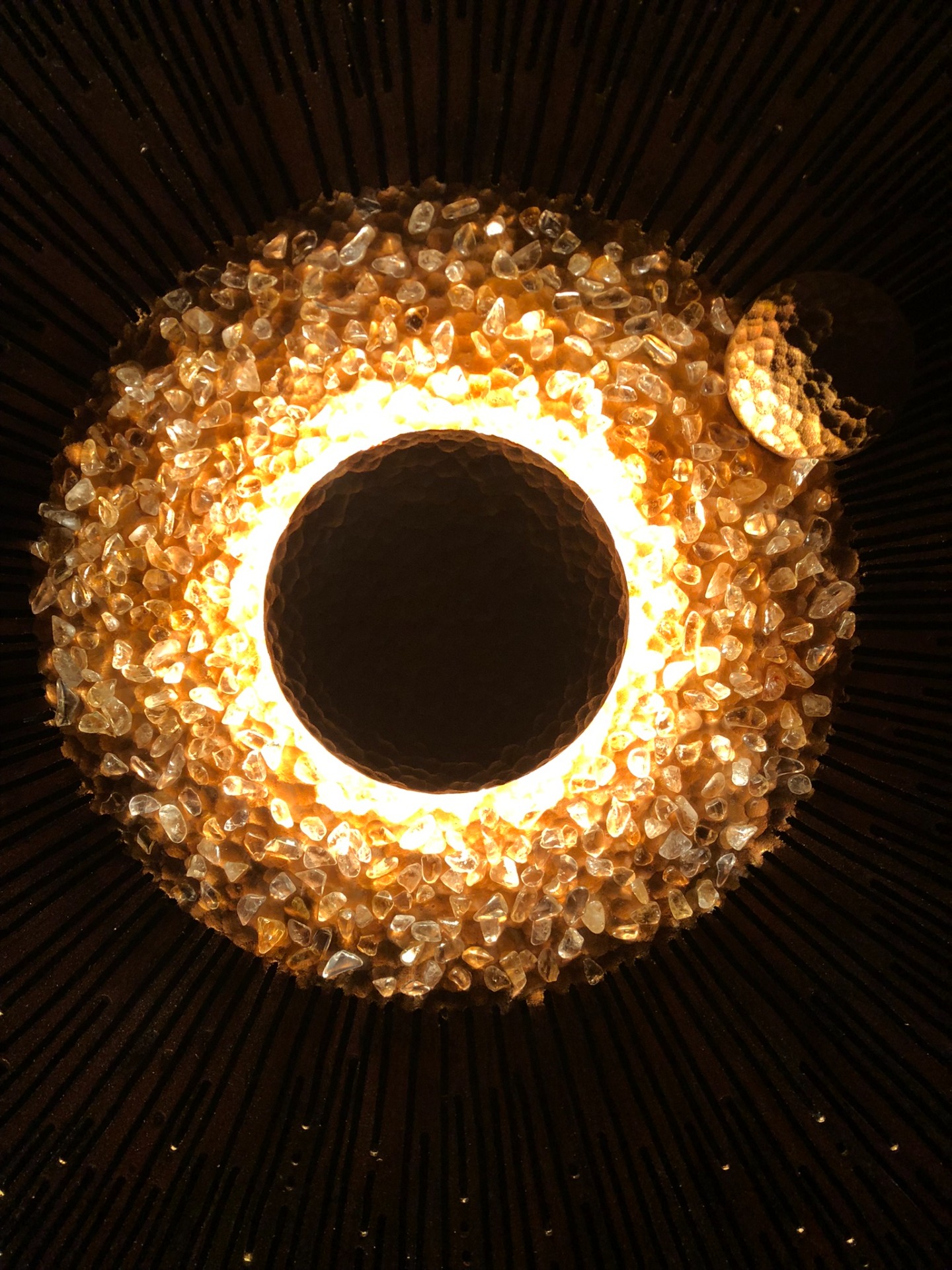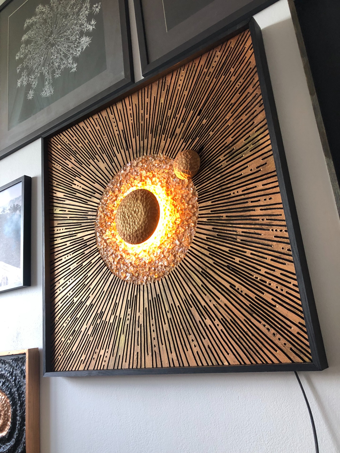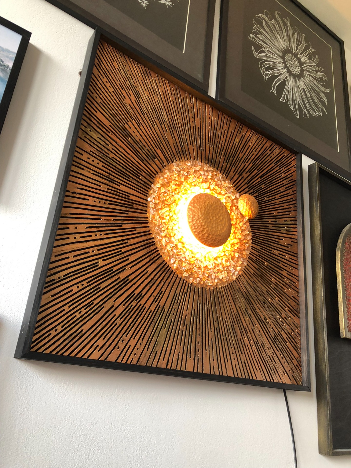 Zásadní podstatou celého obrazu je světlo vycházející ze samotného středu, které se láme v kamíncích citrínu. Tak se rozbíhá po celém obraze v různých tvarech a odstínech. To vše je podpořeno reliéfní strukturou obrazu a odstíny zlaté v kombinaci s černou barvou.