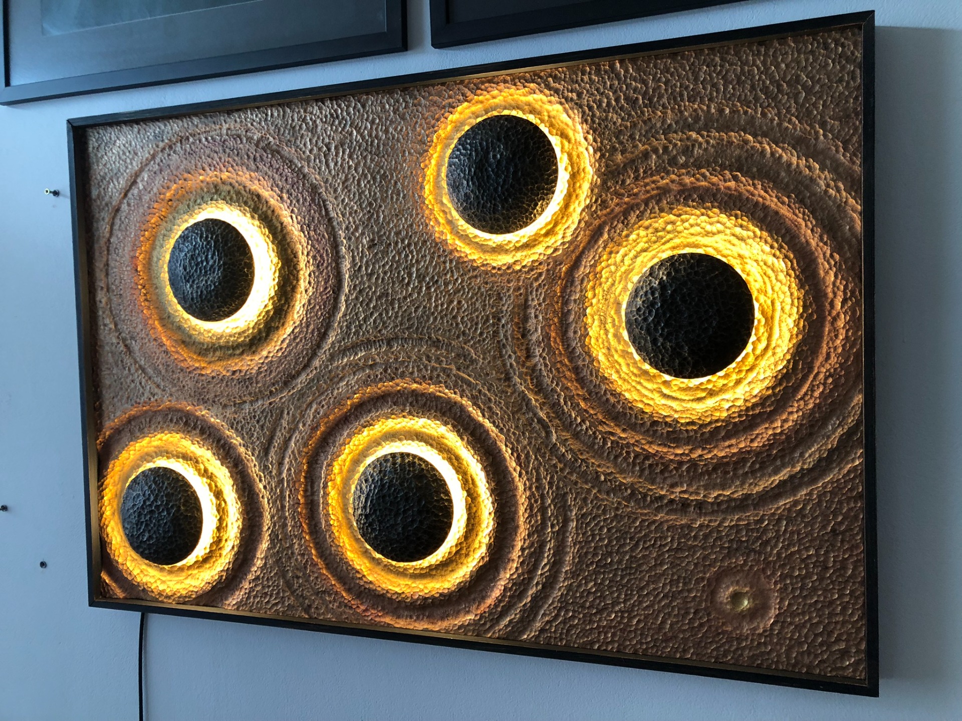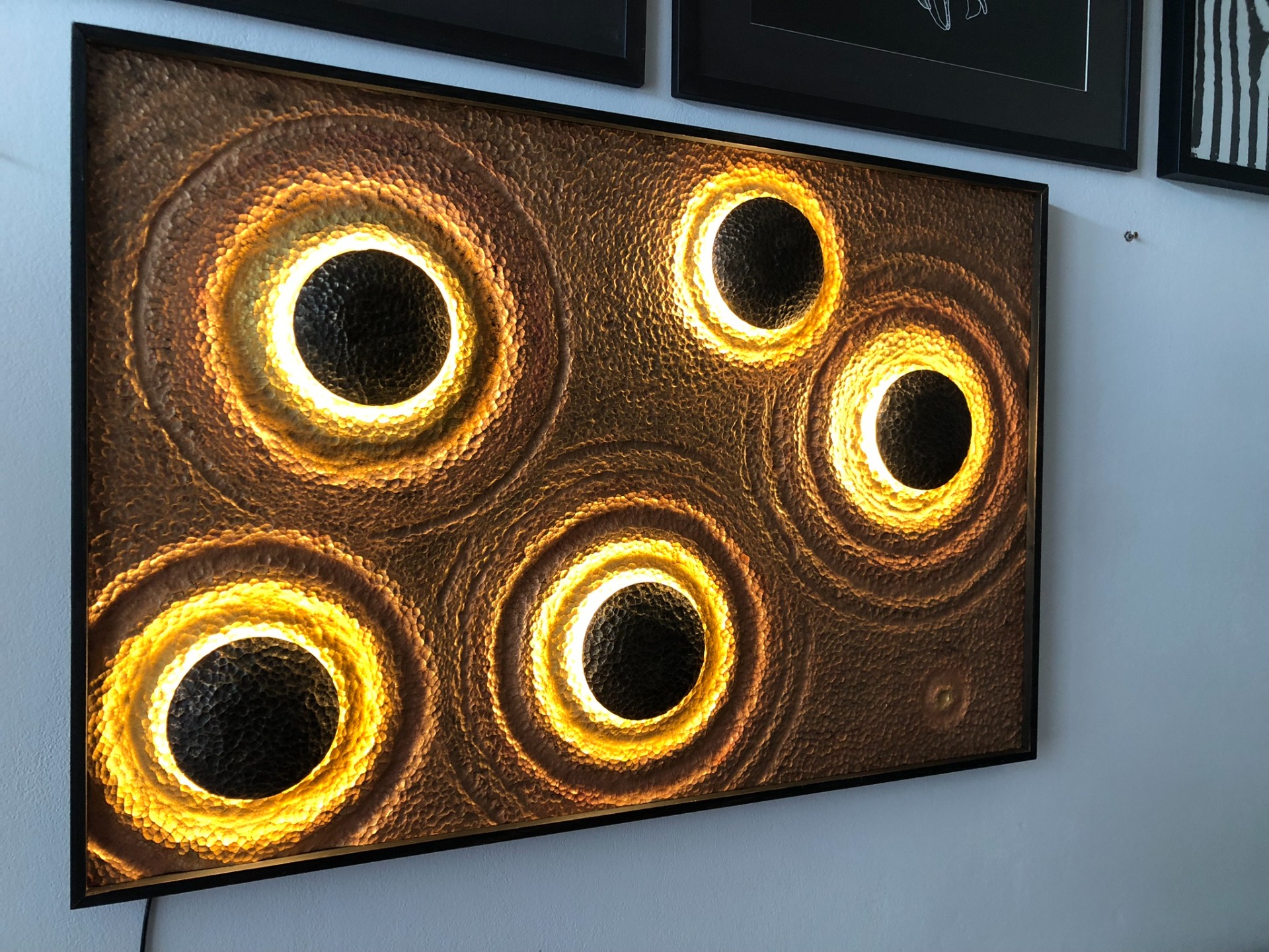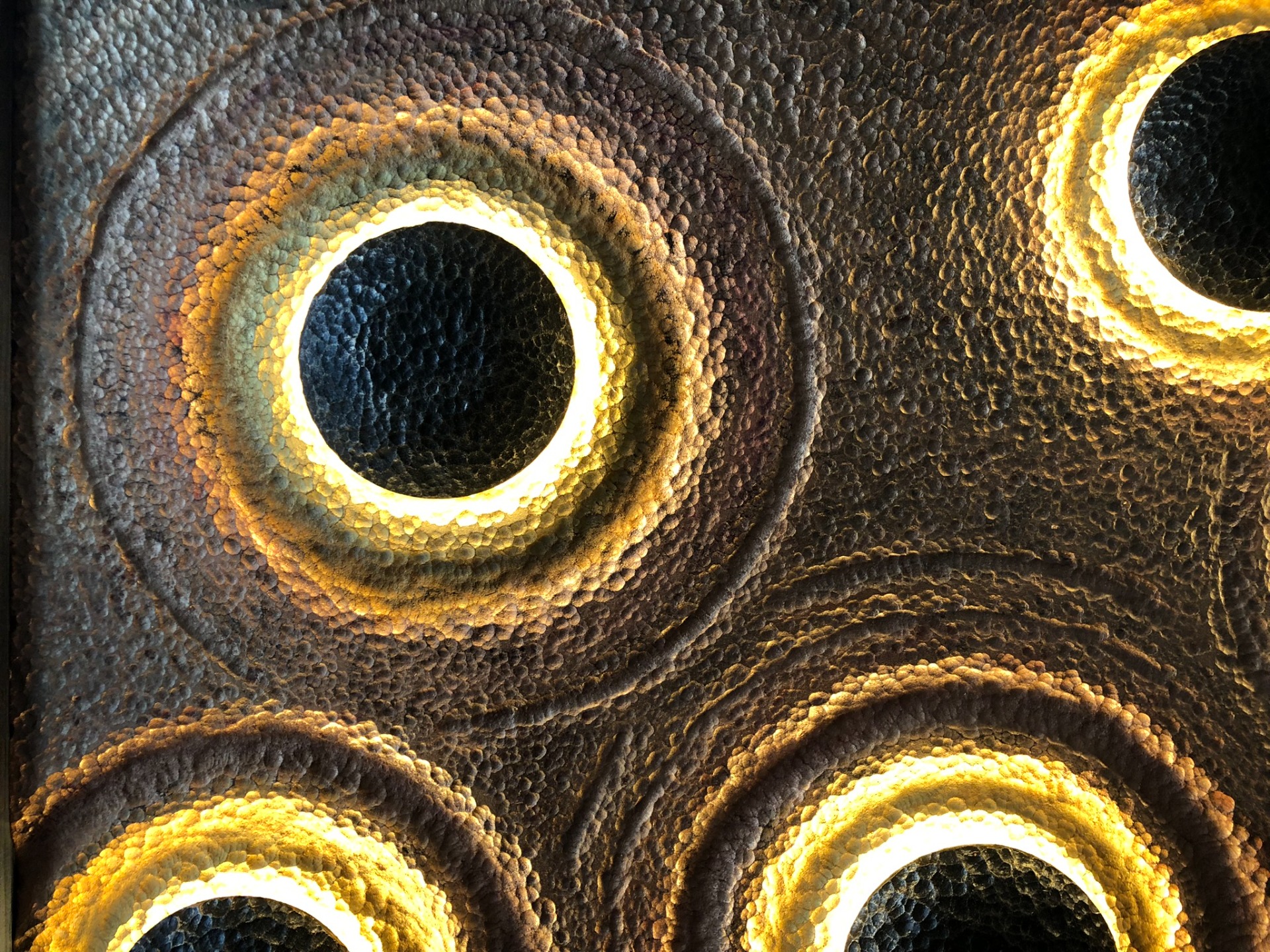 Tato světelná plastika, je zrcadlem, které odráží to, co je v každém z nás skryto. Na první pohled vidíte temná, hluboká místa – stejně jako v životě často přehlížíme své vlastní schopnosti a zdroje. Ale stačí jediný dotyk, a z hlubin se zrodí světlo. To, co bylo skryté, se rozzáří v plné kráse a odhalí nekonečné možnosti.