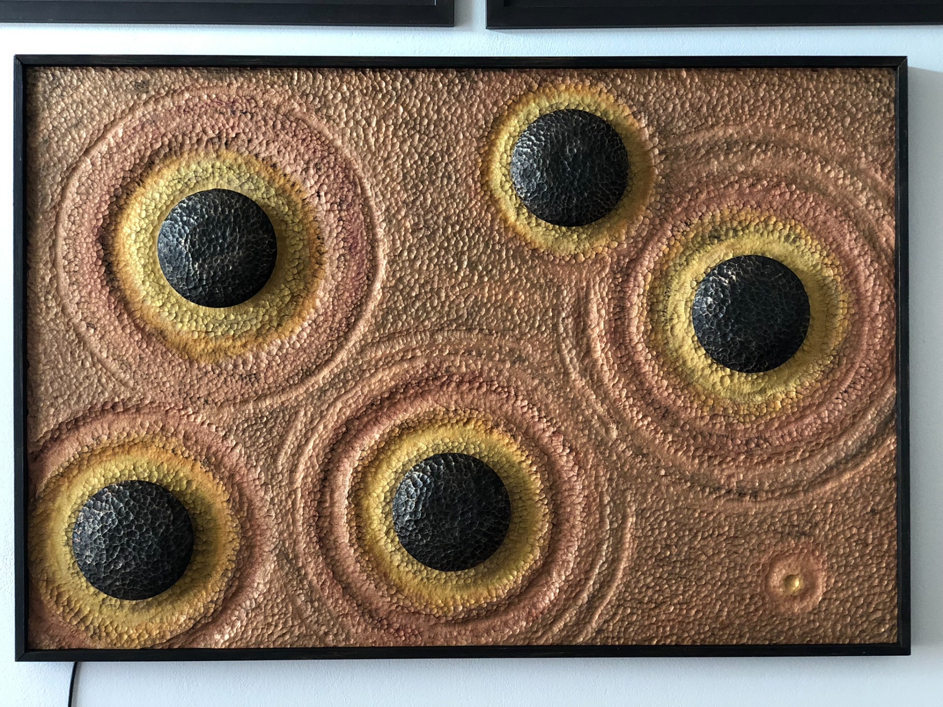 Reliéfní obraz na MDF desce s použitím akrylových barev, světla a stínů.
